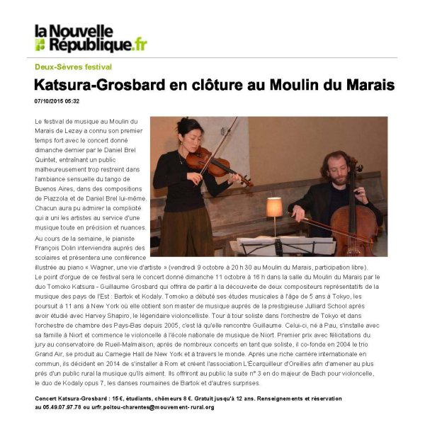 2015-10-07 - La Nouvelle République - Katsura-Grosbard en clôture au moulin du marais