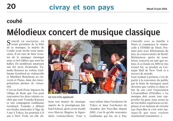 En avant-première de la Fête de la Musique, la mairie de Couhé invite ces trois musiciens plein de talents, pour un concert dans tous les styles de musique !
